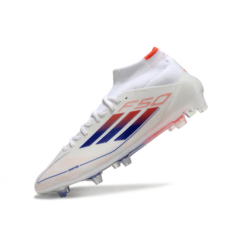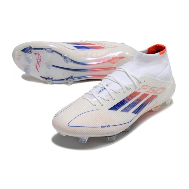 Chaussures adidas F50 Elite Mid FG Advancement - Blanc Rouge Bleu